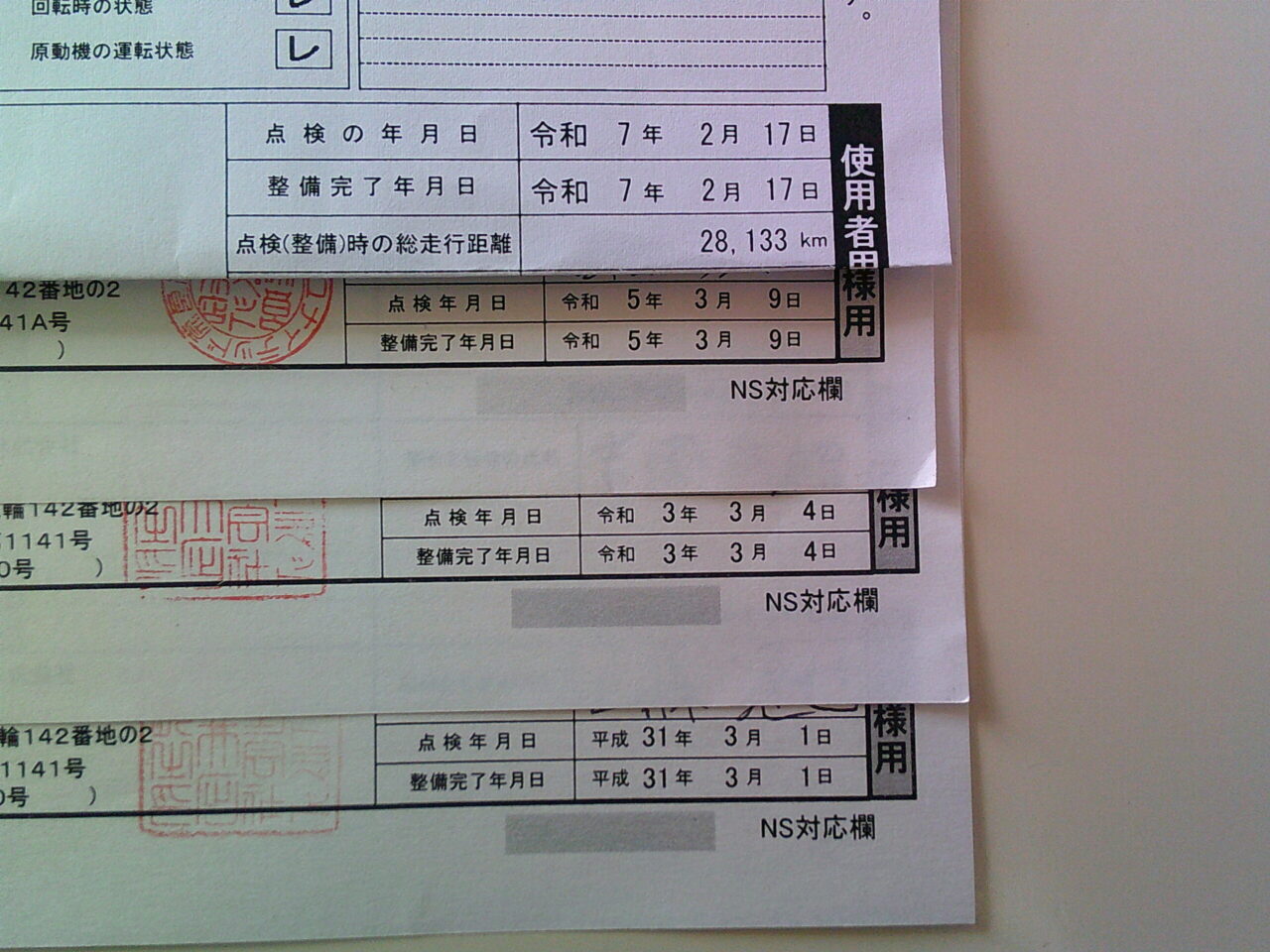 過去の点検記録も残っています。